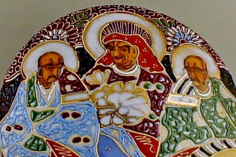 Satsuma fajance æske med låg. Dekoreret med tre ældre mænd i profil. Måler : 6.5 x 14 cm. Stemplet. Tidligt 20 årh. God stand, har et skår indvendigt i låget.