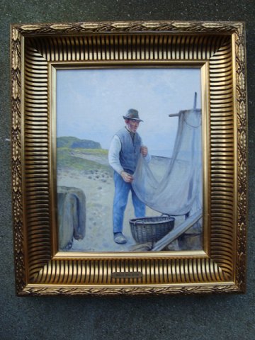Maleri af Niels Walseth - Fisker ordner garn.