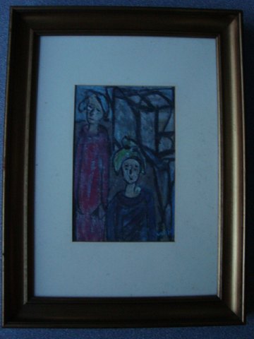 Indrammet med passepartout (dette lidt snavset, men pastellen fin).