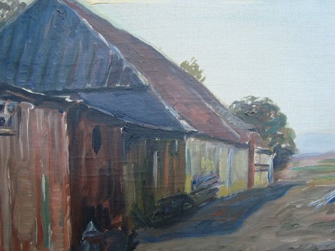 Maleri af Frederik Lange - Gammel lade ved Troldborg Gaard, Skagen 8. maj 1931.
