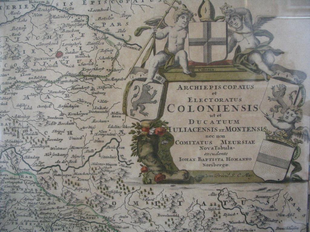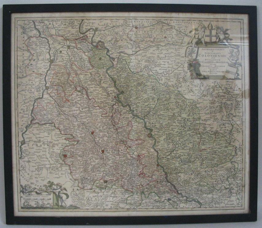 Map, 17th century. Cologne archdiocese, '"Archiepis copatus mm", designed by Johan Baptista Homanno. Hand-colored, 50 x 60 cm.