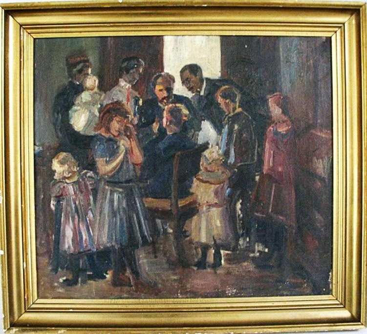 Sigurd Wandel (1875 - 1947) Danmark: Lægen på besøg. Olie på lærred. 58 x 66 cm. Betegnet på blændrammen.