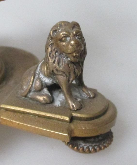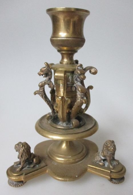 Par bronze stager, 19. årh. Frankrig. Med dekorationer på fodstykke med siddende løver; stammer med rifllinger og jermer. Tylle med riflinger. H.: 14 cm.