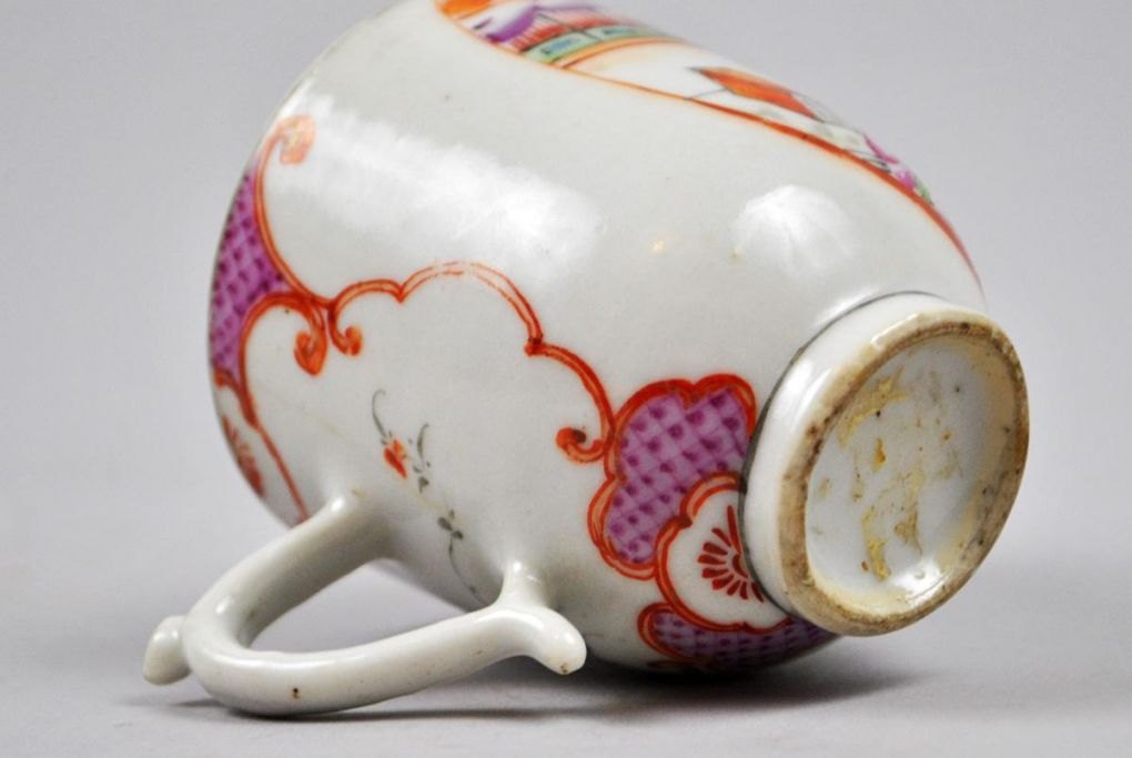 Chinese cup in porcelain, with figurines in mandarin porcelain, China Qianlong (1736 - 1795). With handle, H: 7 cm. With small cracks.
