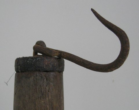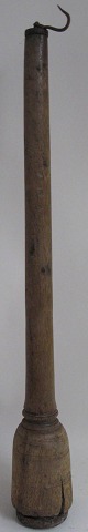 Vægt i egetræ, Danmark, 1700-tallet, profileret, med jern i enden og krog. Med små messingsøm. L.: 72 cm.