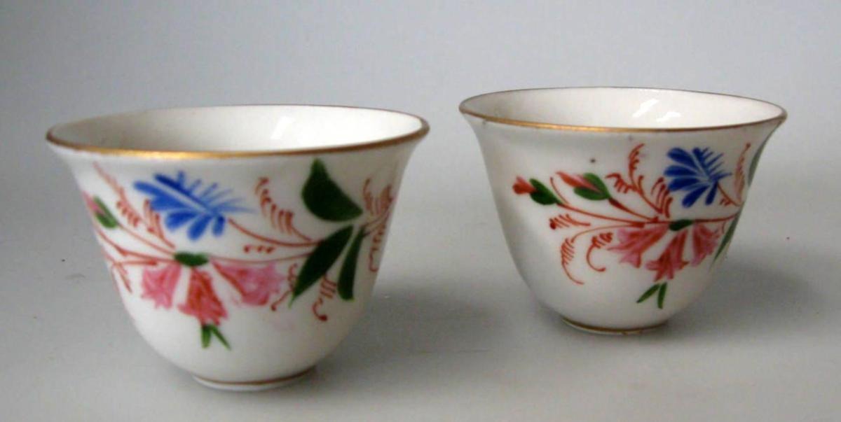 Par russiske vodkakopper i porcelæn, Dulevo, o. 1930
