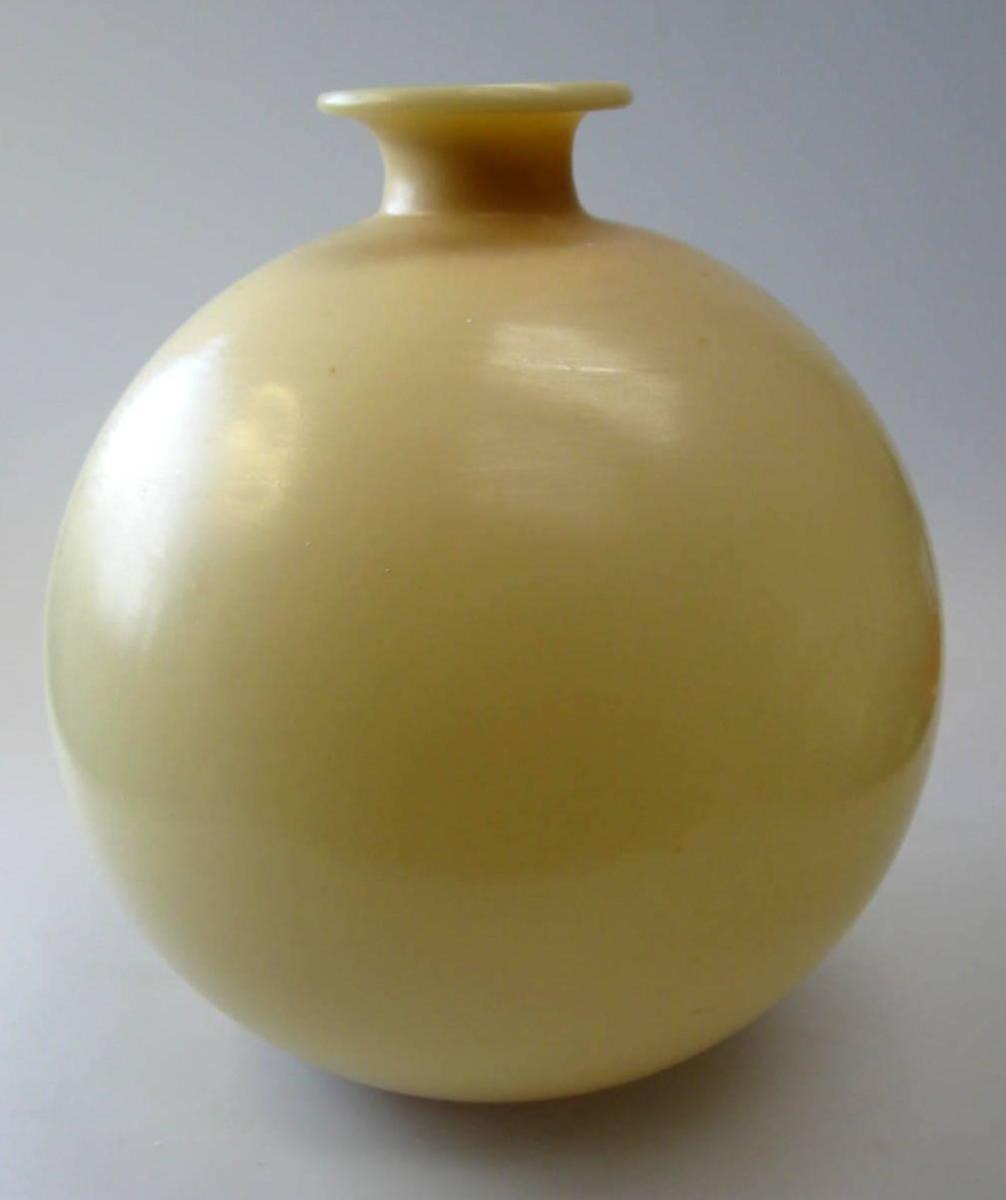 Cremefarvet kugleformet vase i glas, deco, o. 1930. Kugleslebet i bund. Kravet halsmunding. H.: 22 cm.