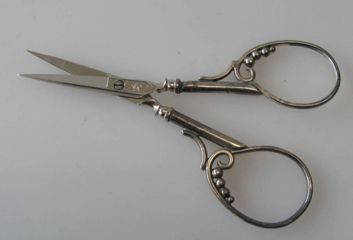 Lille broderi sølvsaks, o. 1900.