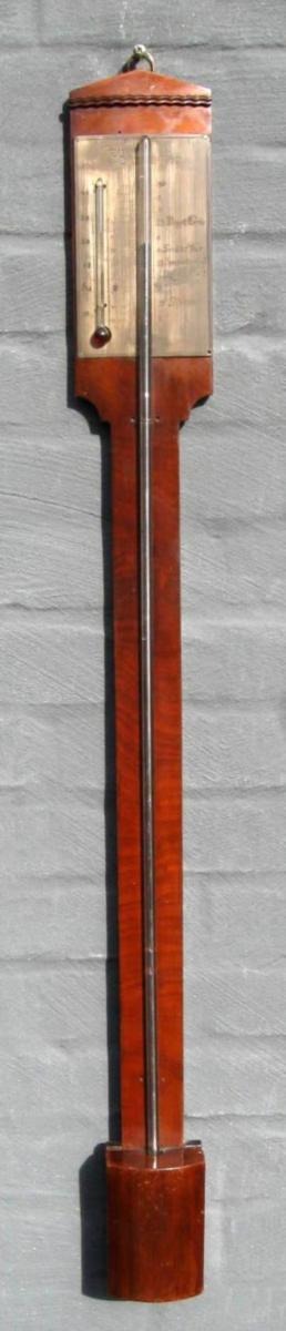 Dansk barometer, 19. årh. Kviksølvsøjle og alkohol termometer. I mahogni. H.: 94 cm.