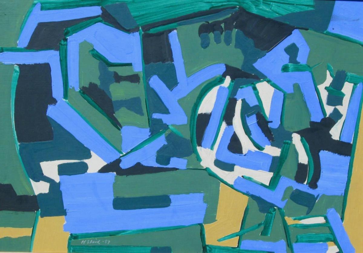 Strid, Hardy (1921 - ) Sverige: Dekret. Olie på masonit. 46 x 65 cm. Signeret.: H. Strid. 59.