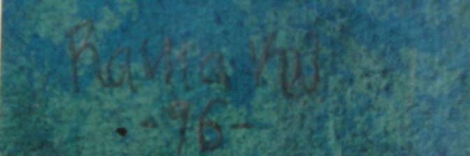 Nash, Rama King (1976 - 2018 ) Danmark: Komposition. Akvarel. Signeret.: Rama KN - 96. 18 x 15 cm. Med guldramme.
