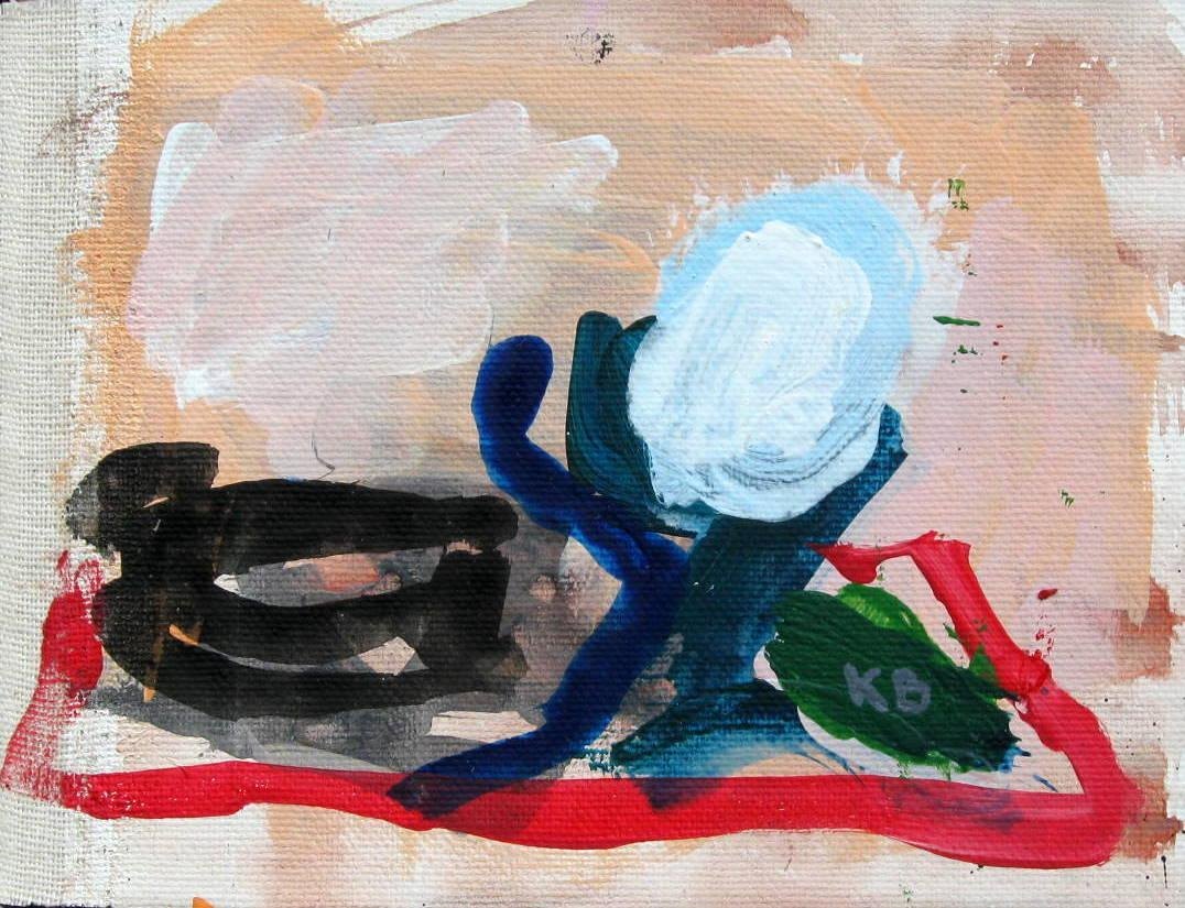 Bahnsen, Klaus (1952 - ) Danmark: Morgenmad. Acryl på lærred. Signeret: Mongram. 13 x 16,5 cm.