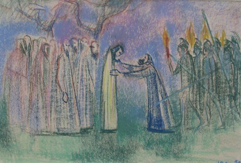 Christensen, John Sparre (1921 - 1999) Danmark: Kristus i Getsemena. Pastel på papir. Sign.: J.S.C - 59. 29 x 41 cm. Med fyrretræs ramme.