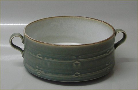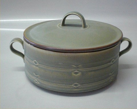 512 Kartoffelskål med låg med hanke 7,5 x 26 cm (1862) Bing & Grøndahl Grønt Rune Quistgaard for B&G / Nissen Kronjyden Stoneware