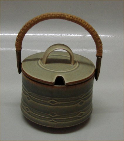 523 Marmeladekrukke med hank 10 x 11 cm (1867) Bing & Grøndahl Grønt Rune Quistgaard for B&G / Nissen Kronjyden Stoneware