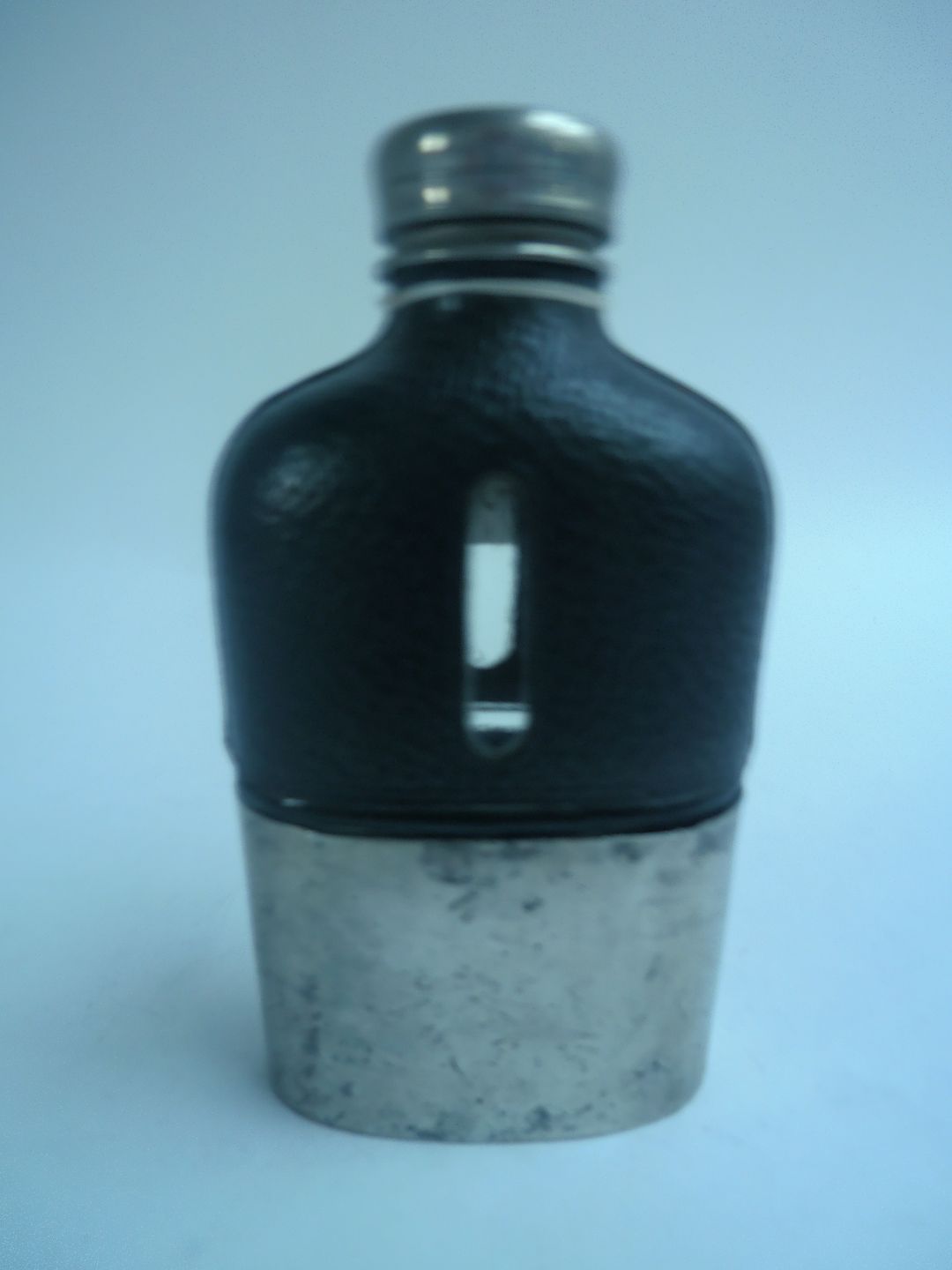 Lommerlærke af glas, læder og tin, England ca. 1880.