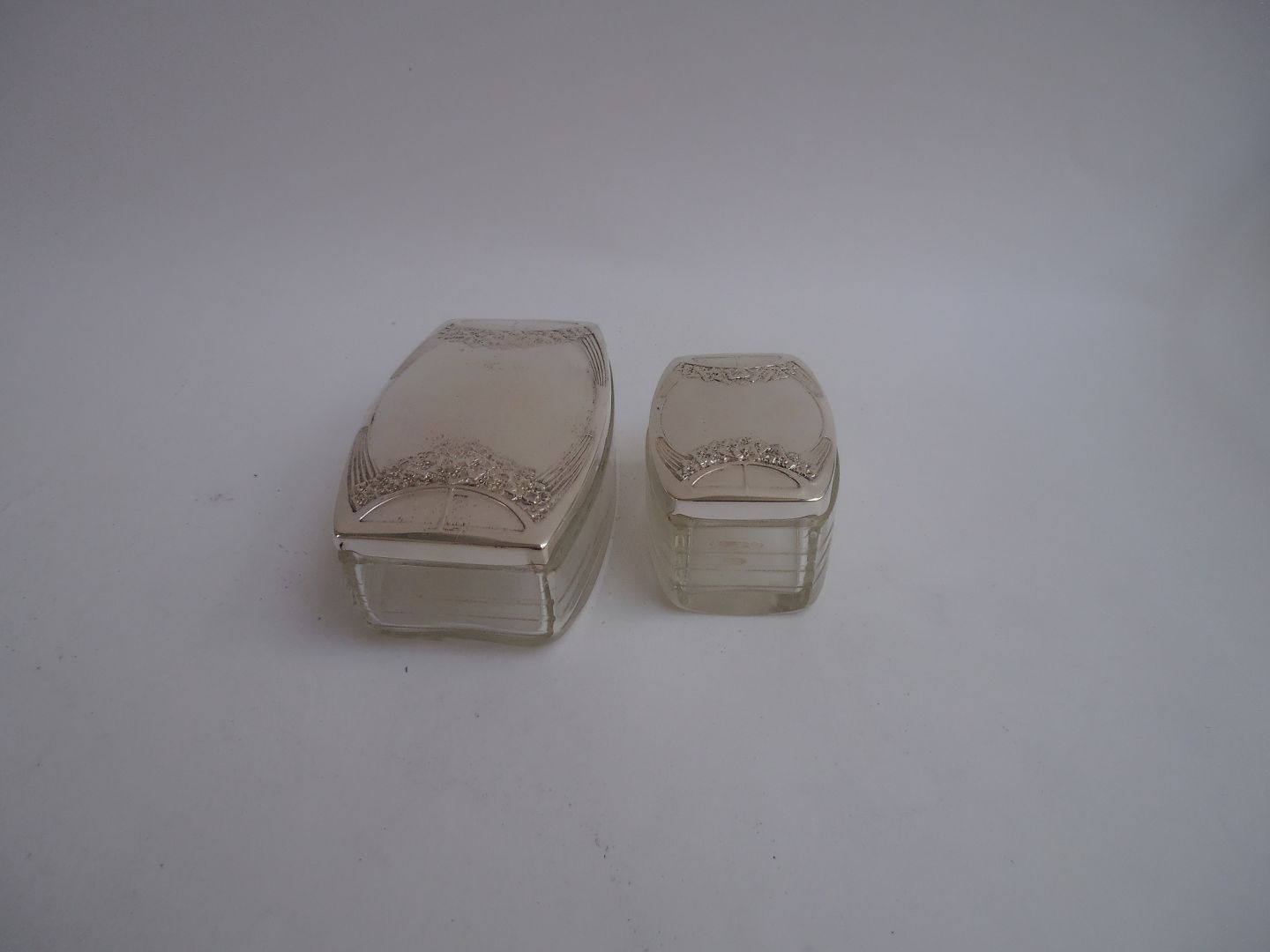 Æsker af glas m. nyforsølvet pletlåg, Frankrig ca. 1920.