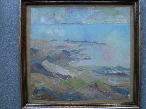 Maleri af Svend Berthelsen Stenvig - Udsigt mod Sønderho, Fanø 1949.