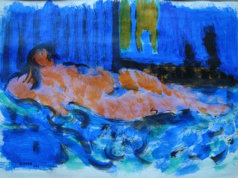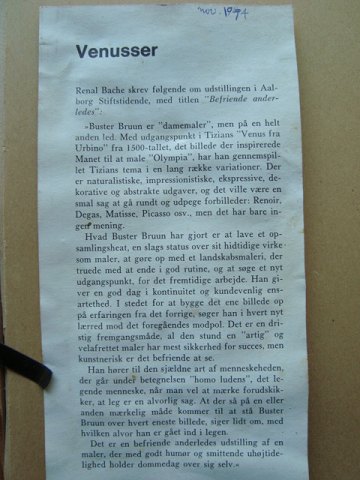 Liggende Venus 1974 - fra serien Venusser - hvorfra der er en anmeldelse bagpå af Renal Bache november 1974.