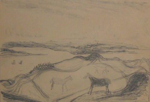 Søndergaard, Jens (1895 - 1957) Denmark: Landscape with horses.