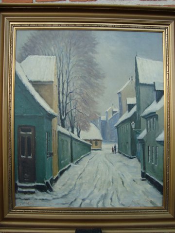 Vinterparti fra Skolegades Vandgyde - sidegade til daværende Skolegade i Aalborg (Nuværende gadenavn er efter 1939 - Vingårdsgade).