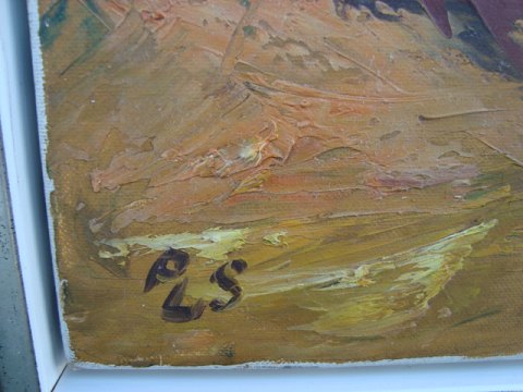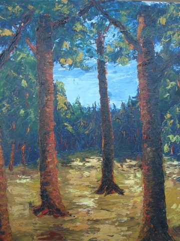 Maleri af P.L. Sørensen - Skov med nåletræer.