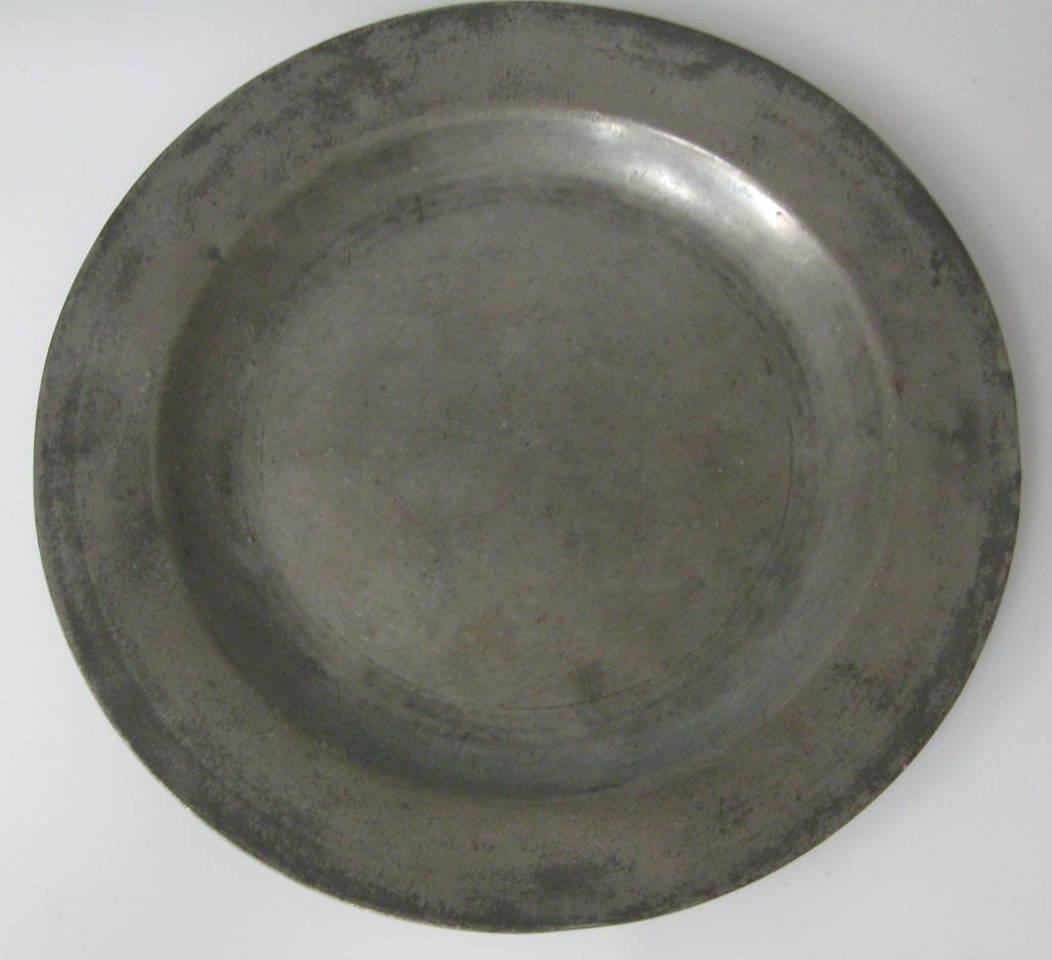 Tin tallerken, London, England, 1700-tallet. Med mester mærke London - men utydelig mester. Dia.: 23,5 cm.
