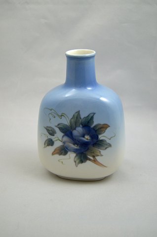 Vase med blå blomst nr. 790/4646. Højde: 15 cm. - Ø: 10 cm. Solgt.