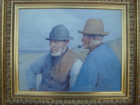 2 fiskere i samtale på stranden.