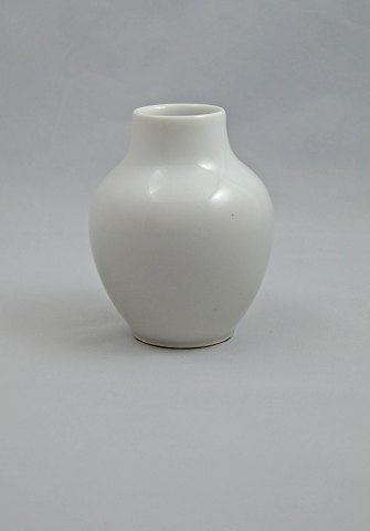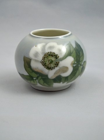 Hvid vase med lyserød blomst nr. 254/45a - H: 10 cm. Ø: 7,5 cm. Solgt