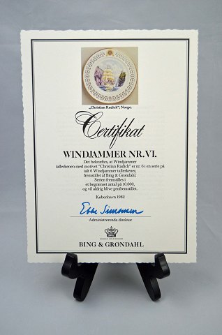 Windjammer seriens nr. 6 er motivet af skibet ‘Christian Radich’ fra Norge . Platte nr. 8871/633. Den har en diameter på 27,5 cm. Platten er i perfekt stand, og den er klargjort til ophæng. Den kommer med certifikat. Kontakt os vedrørende pris.