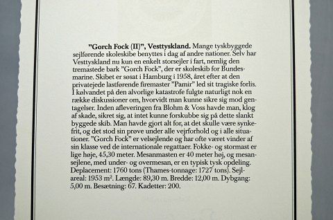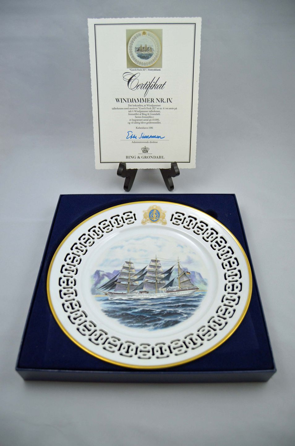 Windjammer seriens nr. 4 er motivet af skibet ‘Gorch Fock’ fra Vesttyskland . Platte nr. 8869/633. Den har en diameter på 27,5 cm. Platten er i perfekt stand, og den er klargjort til ophæng.