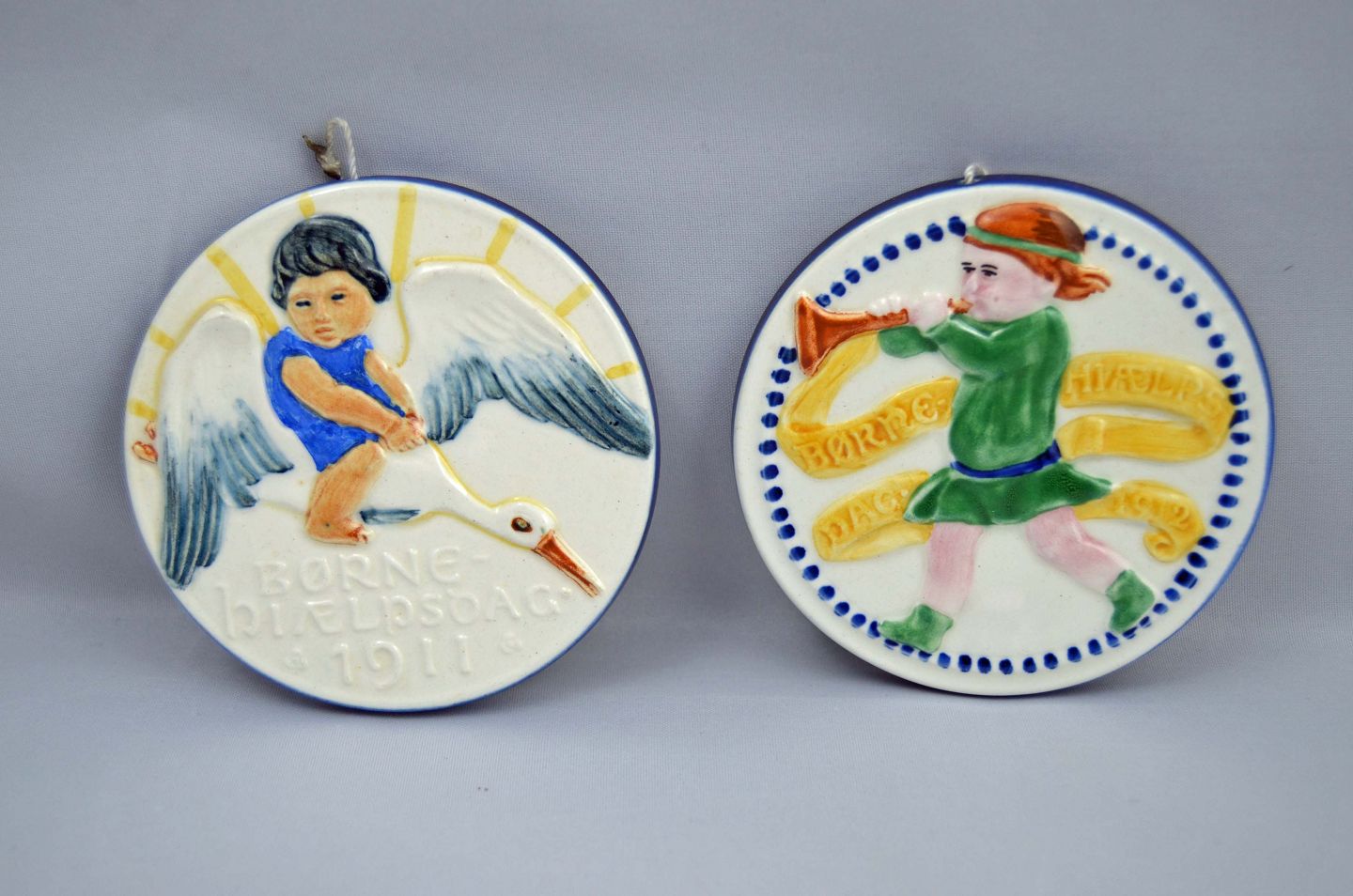 Børnehjælpsdags platte fra Aluminia fra år 1911 og 1912.