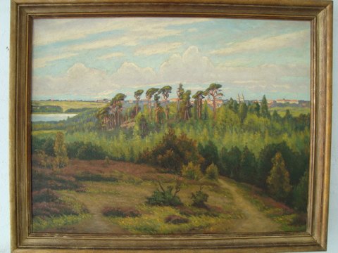 Maleri af Hans Kruuse - Landskab fra Viborg egnen med vue ind over Viborg by.