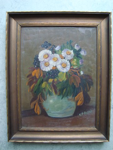 Maleri af Ingeborg Debois - Vase med blomster og bær.