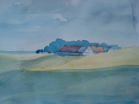Akvarel - Parti fra egnen ved Aggersund juli 1973.
