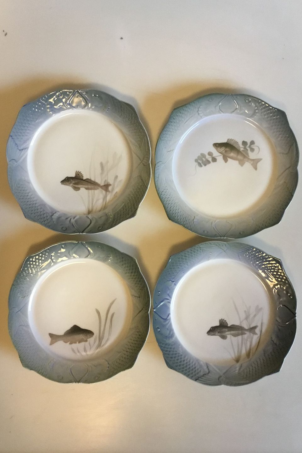 Sæt på 12 Royal Copenhagen Art Nouveau Fiske Service Tallerkener med Fiskekant No 3002