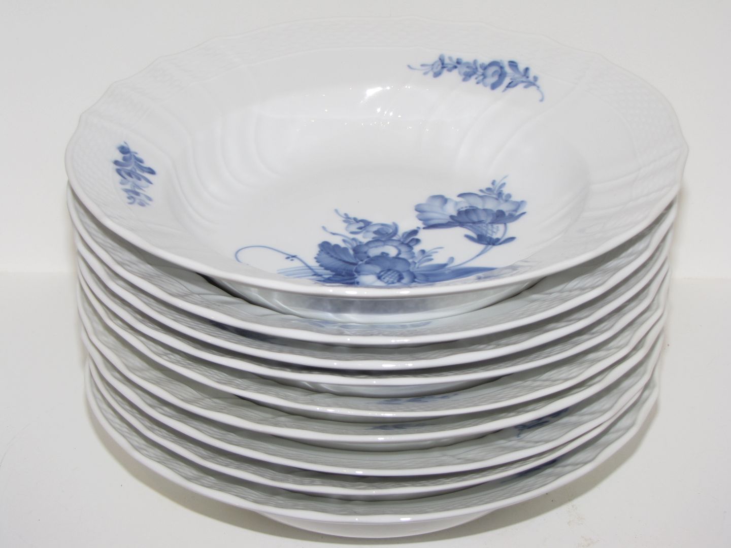 Royal Copenhagen Blå Blomst Svejfet, store dybe tallerkner.
