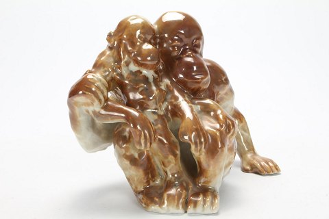 Bing & Grøndahl Stentøjsfigur i Lystre Glasur af Gauguin/Knud Kyhn Abe med Unge
