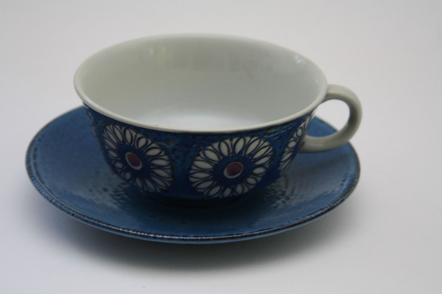 Royal Copenhagen, Annette, Tekop, underkop og kagetallerken. Designet af Berte Jessen. Produceret i perioden 1962-66.