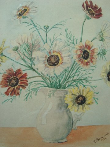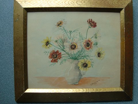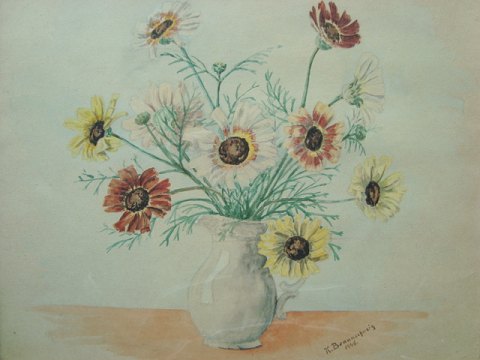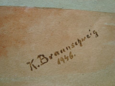 Bagpå - Akvarel af Okseøje udført af K. Braunschweig 1946 - Født i Bayern - Maler og Politimand - Sad i Flygtningelejren Hvorup Plantage.