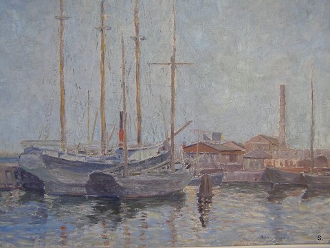 Kongsmark Både i havn 48*60 cm. med ramme 59*72 cm.