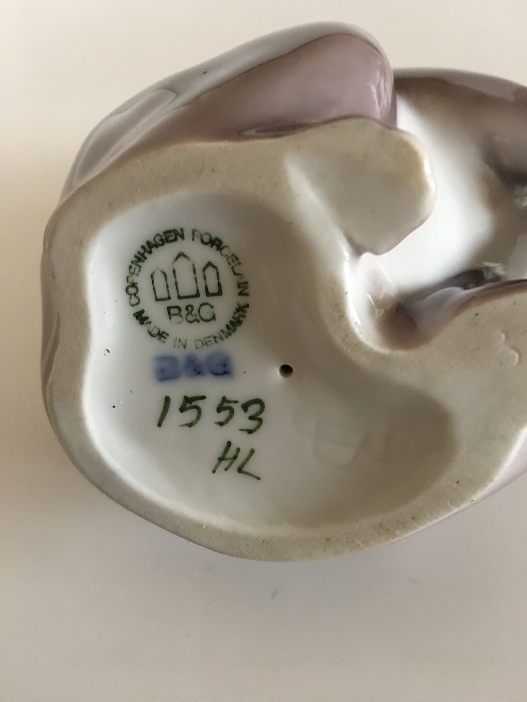 Bing and Grondahl Figurine of Cat No. 1553. Measures 10 cm / 3 15/16 in. x 9 cm / 3 35/64 in.