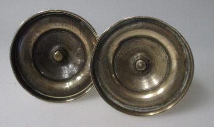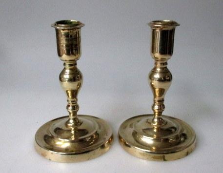 Et par danske "Næstvedstager", 18. årh. Messing. Rund fod og profileret stamme. H.: 12,5 cm.