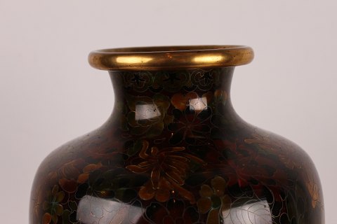 Old Vase with cloisonné decoration on stand made of wood (with defects)