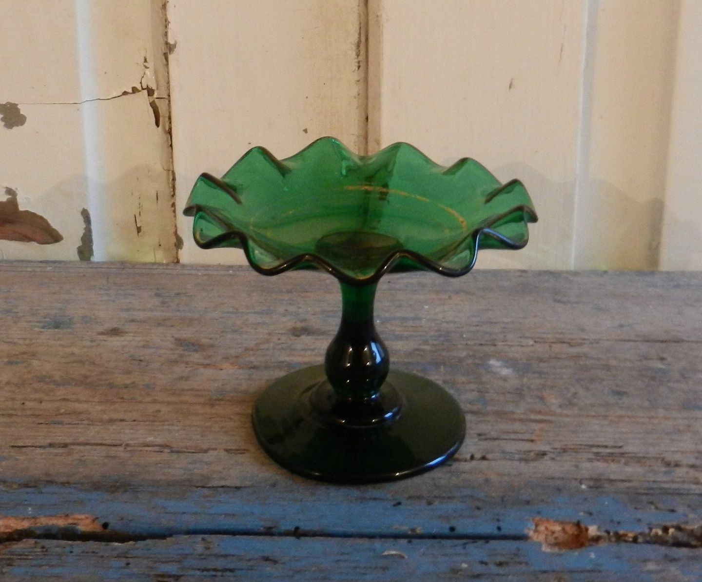 1800tals sukkerfad i mørkegrønt glas med guld dekoration.