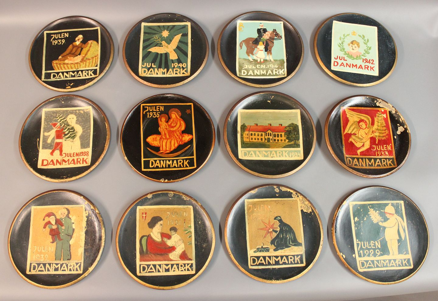 Gl. Juleplatter i ler med flotte motiver fra 1929 og opefter.