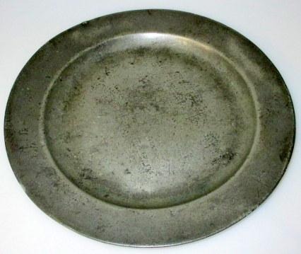 Antik engelsk tin tallerken, 18. årh. Utydelig stemplet. Dia.: 23 cm.