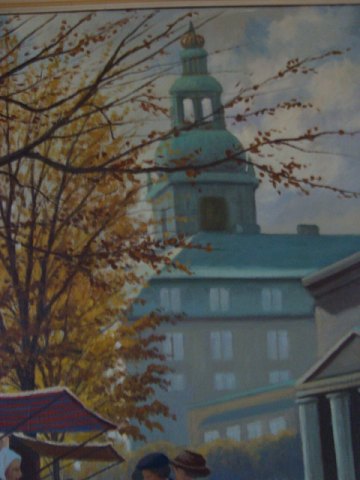 Maleri af Chr. Jensen Virklund - Blomstersælgerne ved Christiansborg Slotskirke.