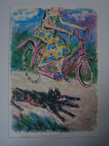 Cyklende kvinde og løbende hund 1991.
